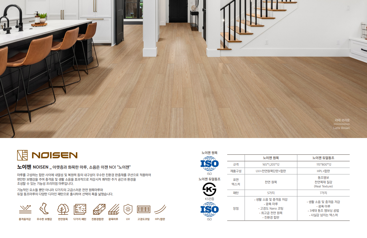 1. 생활소음 저감기능 - 청소기, 믹서기 작동소리, 심하게 큰 발소리, 의자끄는 소리와 같은 생활소음을 일반 마루대비 획기적으로 저감하여 편안한 공간을 만들어 드립니다.